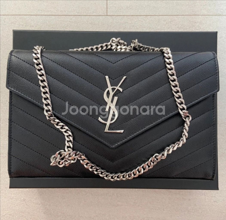 개인정보(거래정보)를 주고받는 행위는 사기에 노출될 수 있으므로 즉시 중고나라로 신고해 주세요입생로랑 그랑 드 뿌드르 가죽 소재 CASSANDRE 클래식 체인 지갑 BLACK 입니다 은장이구요 선물 받고 한 번도 안 쓰고 보관만 했습니다. 정가 229만원입니다 직거래만 합니다