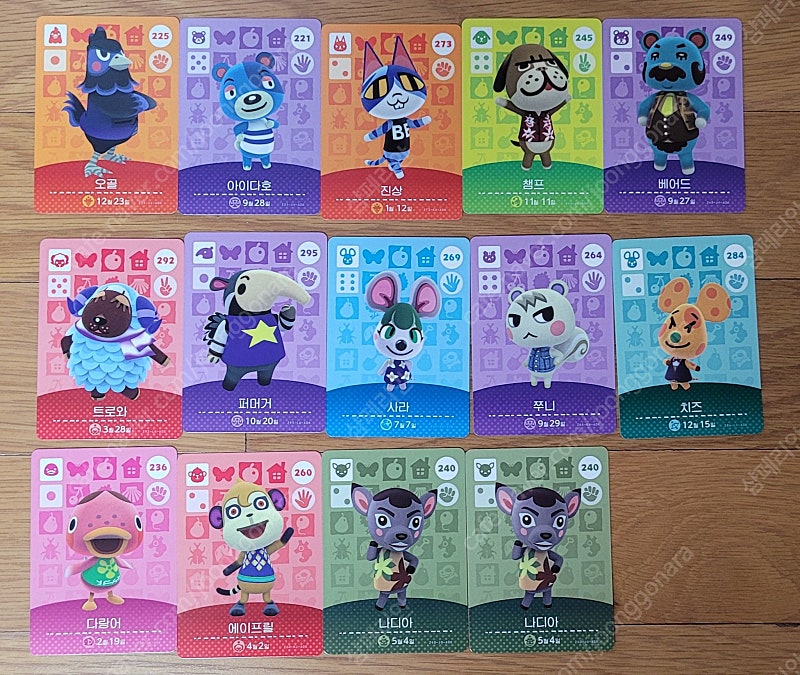 📢 제목에 "제조사/ 브랜드 명"과 "상품명(ex. 동물의 숲2) ”를 넣어 작성하면, 보다 빠른 판매가 가능합니다! 📢 게시글 작성 시 배송 방법에 “직거래”와 “내 위치” 설정할 경우, 보다 빠른 판매가 가능합니다! 👆 오늘 작성가능한 게시글 수가 부족하다면, 상단에 "중고나라 앱 다운받기"를 통해서 앱에서 작성해 주세요! 동물의 숲 3탄 아미보 판매합니다. 장당 가격이며, 배송비는 별도입니다. 편의점 반값 택배 1,800원 편의점 일반 택배 4,000원 우체국 택배 4,000원 그 외 원하시는 배송이 있으시면 문의 주세요. 문의는 네이버 채팅이나 옾카(댓글) 부탁드립니다. 댓글은 잘 못봐요! 주민 쭈니 45,000원 오골 500원 아이다호 500원 진상 500원 챔프 500원 베어드 500원 트로와 500원 퍼머거 500원 사라 500원 치즈 500원 다랑어 500원 에이프릴 500원 나디아 500원 (2장 있음) NPC 켄트 500원 펠리오 500원 고파유 500원 프랭클린 500원 부엉 500원 귀녀 500원 너굴 500원