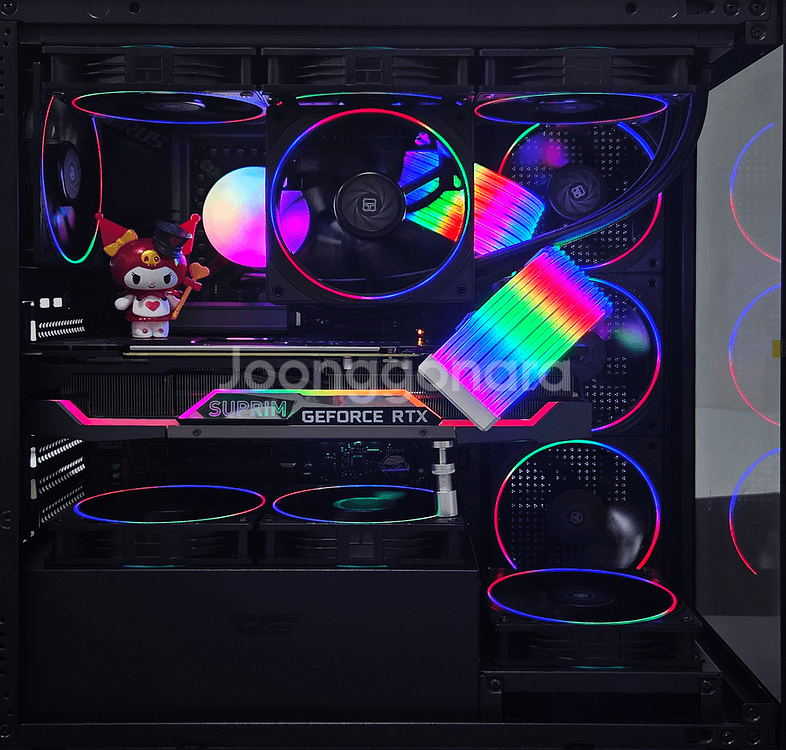 사진 있는 그대로 드립니다. 바로 출고 가능! 오셔서 실물 확인하고 직거래도 가능하니 편하게 문의 주세요. CPU - 인텔 코어i9-13세대 13900K 메인보드 – Z790 AROUS ELITE 쿨러 - 앱코 P360 포세이돈 ARGB RAM - RAM - PATRIOT DDR5-5600 CL40 VIPER VENOM 패키지 32*4ea 총 128G 방열판 장착 유 SSD - 삼성전자 PM9A1 M.2 NVMe 병행수입 (1TB) 그래픽카드 - MSI SUPRIM X24G RTX3090 리퍼 파워 – EXCEL FOCUS 1000W 80PLUS 골드 케이스 - DARK FLASH DS900 ARGB 강화유리 기타 사항 : LGA1700 소켓가이드 인피니티 FAN 11EA 변경 전부통일 (정방향 리버스) RAM 방열판 장착 (FURY) M.2 방열판 장착 RAM 쿨러 장착 (정면의 FAN) RGB 케이블 24PIN 2EA RGB 컨트롤러 + 리모컨 3.5인치 컴퓨터 모니터링 상태창 LCD 피규어 2종 선정리 + 기본 무상AS 3년 AND 5년 까지 0! 0 사 7 구 5 이 2 1 둘 연락주세요!