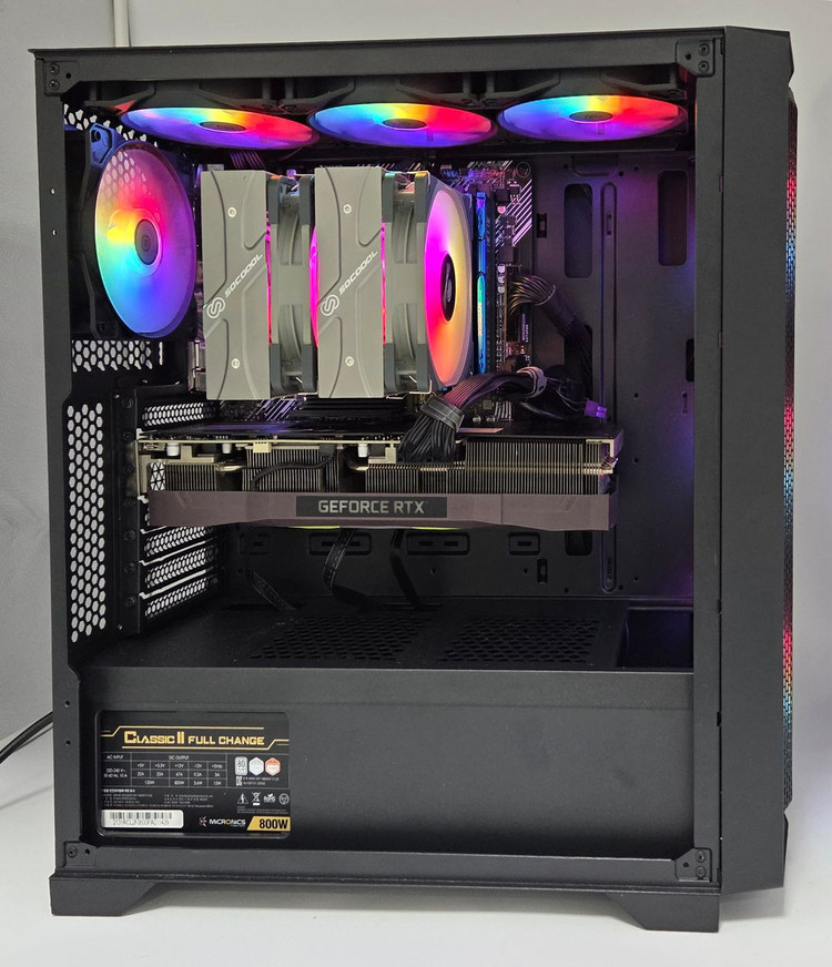 ** 조립되어 있는 실사진 ** ** 즉시 출고 가능 ** CPU ... AMD 라이젠7-4세대 5700X3D (버미어) 쿨러 ... SOCOOL 듀얼타워 1800급 공랭쿨러 (리퍼) 메인보드 ... ASUS PRIME B550M-A 메모리 ... FURY SAMSUNG DDR4 32G (8G * 4EA) SSD ... 삼성전자 PM9A1 M.2 NVMe 1TB 그래픽카드 ... MANLI 지포스 RTX 3070 Ti Rush D6X 8GB (리퍼) 파워 ... 마이크로닉스 Classic II 풀체인지 800W 80PLUS (리퍼) 케이스 ... ABKO 6FAN ARGB 강화유리 (블랙) 0! 0 사 7 구 5 이 2 1 둘 연락주세요!