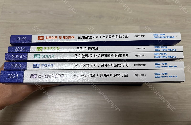 사진에는 없는데 전기(산업)기사 기초 입문 책도 있습니다. 25-2 필기 붙어서 팝니다. 회로이론 & 제어공학 책에만 이론 부분에 약간 필기되어 있습니다. (사진 확인) 나머지 전자기학, 기기, 전력공학, 설비 책은 필기 아예 안 했습니다. 영상 강의는 전부 유튜브 최종인 원장 채널에 올라와 있습니다. 가격은 도서/산간지역 제외 택포입니다. 안심번호나 채팅으로 연락 주세요.