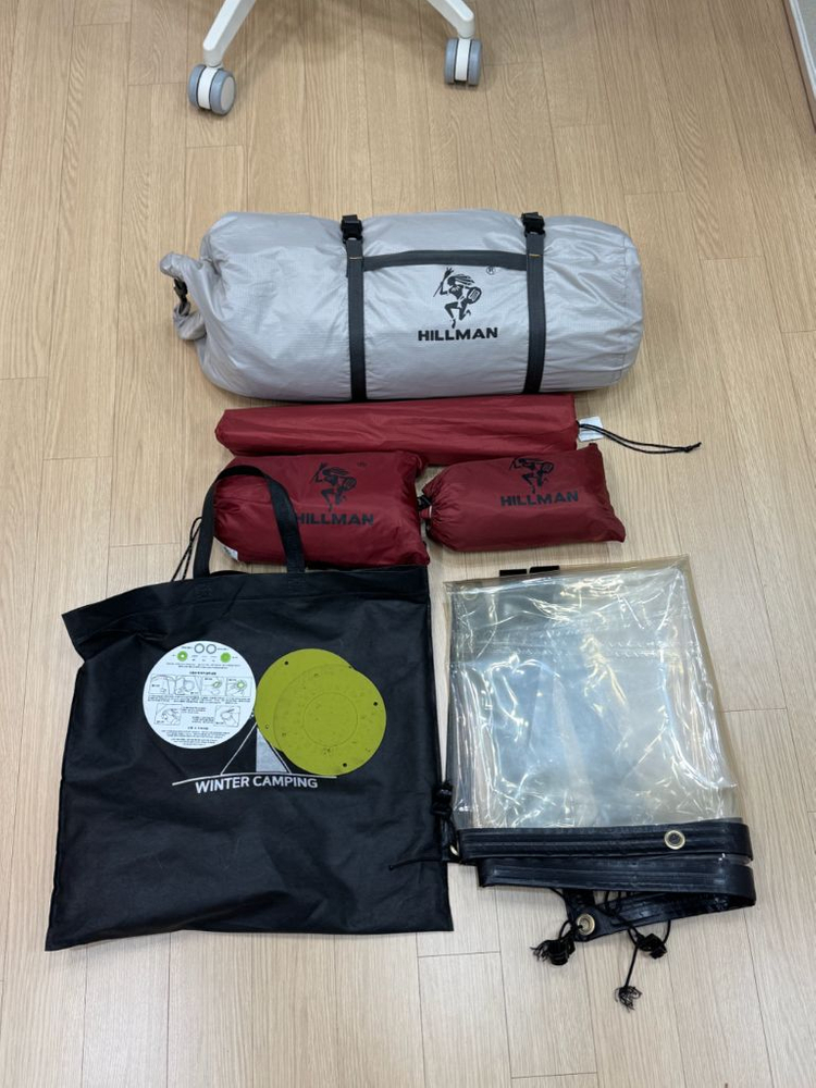 - 백컨트리 키트로 홀잭 되어 있습니다 - 화목난로 전용 텐트로 5회정도 사용했으며, 아직 눈에 보이는 불빵은 없습니다 - 본품과 그라운드시트, 플라이, 우레탄창, 홀잭 레인커버 포함 입니다