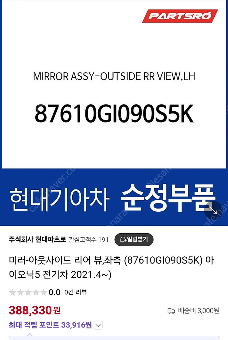 아이오닉5 사이드미러 운전석 회색