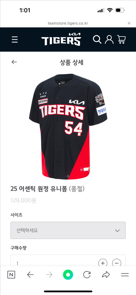 기아타이거즈 24 원정 어센틱 유니폼 85 박찬호