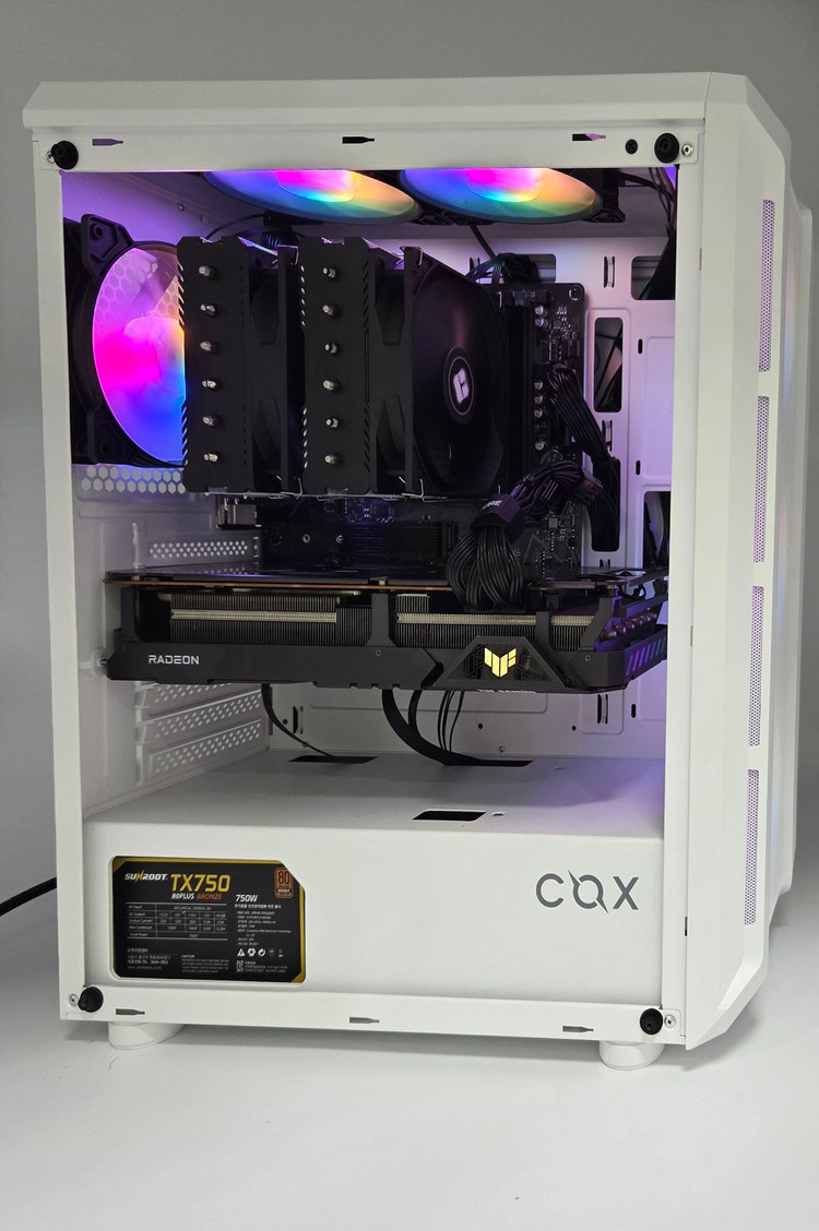 ** 조립되어 있는 실사진 ** ** 즉시 출고 가능 ** CPU ... AMD 라이젠7-4세대 5700X (버미어) 쿨러 ... Thermalright Peerless Assassin 120 SE 메인보드 ... GIGABYTE B550M DS3H 듀러블에디션 메모리 ... DDR4 32G SSD ... M.2 NVMe 512G GEN4 그래픽카드 ... ASUS TUF Gaming 라데온 RX 6800 XT O16G OC D6 16GB (리퍼) 파워 ... 정격 750W 케이스 ... 6FAN ARGB G200 WHITE 0! 0 사 7 구 5 이 2 1 둘 연락주세요!