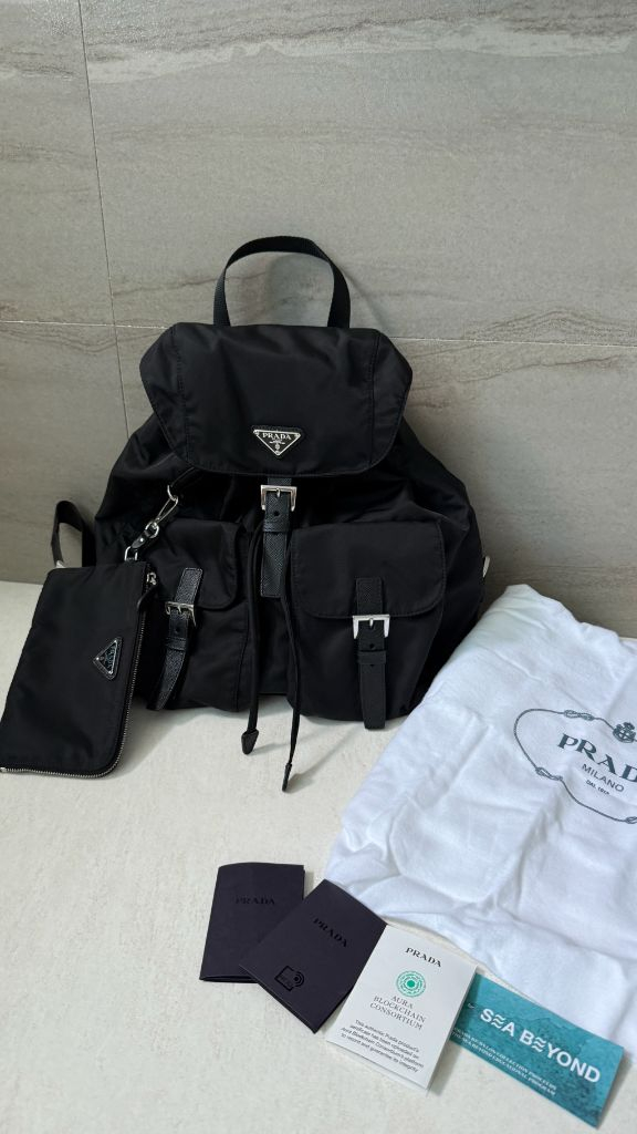 프라다 리나일론 백팩 블랙 미듐 사이즈 입니다. 2024년 10월 오사카 간사이 공항 면세점에서 구매하였으며 (공홈 계정 인증 가능) 실 착용은 짧게 3-4회 정도 되는듯 해요. 수납력도 좋고 소재도 튼튼해서 기저귀 가방으로 사용하려 구매했으나 사실 여닫는게 다소 귀찮아서 아기 데리고는 잘 안써지더라구요🥹 그래서 그냥 상태 좋을 때 내놓습니다. 바디 상태 오염 없고 매우 좋은편이나 클로징 자석 은장에 사용감은 두어번 여닫아도 생기니 그 점 참고해주세요. 구성품은 사진과 같습니다. (쇼핑백 x) 더 자세한 사진 궁금하시면 톡 주시면 보내드릴게요. 육아중이라 찔러보기는 자제해주시고 구매생각 정말 있으신 분들만 톡 부탁드려요 🙏🏻 ✅ 중고상품이라 구매 후 교환 및 환불은 힘들어요. ✅ 예민맘은 조심스럽게 거절합니다. ✅ 터무니없는 가격 흥정은 정중히 사양할게요.