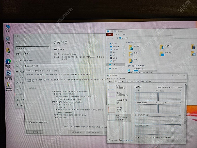 📢 제목에 "제조사/ 브랜드 명"과 "상품명(ex. 맥북 에어 13)”를 넣어 작성하면, 보다 빠른 판매가 가능합니다! 📢 게시글 작성 시 배송 방법에 “직거래”와 “내 위치” 설정할 경우, 보다 빠른 판매가 가능합니다! PC 판매 합니다. 사양으로는 CPU : i5-9400f RAM : 삼성 8기가램 2장 (16gb) MAINBOARD : gigabyte b360m SSD : nvme m.2 256gb VGA : 슈젯 GTX1080 (3060보다좋음) POWER : 쿠거 650w CASE : DarkFlash DCM30 (신품) 배그, GTA, 서든, 발로란트, 오버워치, 롤, 스타, 피파, 던파, 메이플, 로스트아크, 리니지 등등 거의 모든게임 풀옵션 가능 CPU 써멀 재도포 포멧, 윈도우 10 정품인증 및 최신버전으로 업데이트 ,엑셀 및 한글 설치 직거래가 좋겠지만 가까우면 배달도 가능 택배도 가능(우체국택배비1만원추가) 기본 케이스 포장박스에 스티로폼 꽉꽉 채워서 보내드리는데 파손면책 동의 하신걸로 하고 보냅니다 🚨회원님의 거래 게시글을 노린 중고나라 운영진 사칭 피싱 사이트를 주의하세요🚨