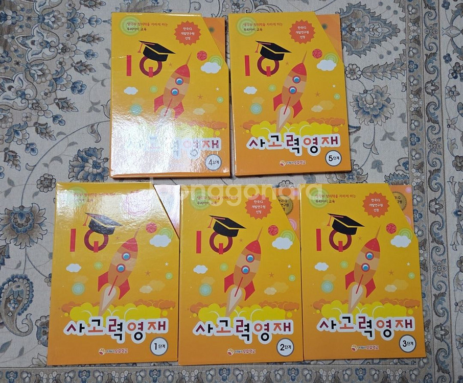 아이의 전체적 지능개발하는데 도움을 주는 사고력영재 입니다. 1단계~5단계로 총 25권으로 구성되어있는데 1단계1.2.3권이 사용해서 없어요. 4.5.권은 그냥서비스로 드리고요. 한 단계당 2만원으로 해서 총8만원 입니다. 택포예요. 원하시는 분은 챗 주세요