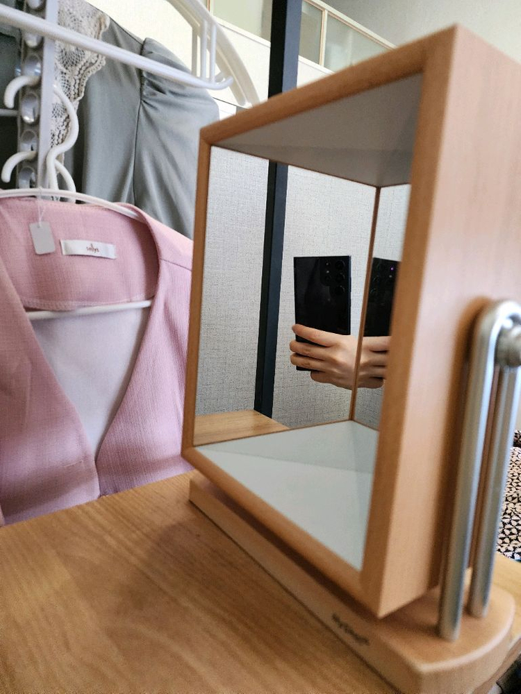 리얼미 거울이에요. 택포 가격. 양면 다 거울로 되어있고 뒤에는 일반거울 앞에는 내 진짜 모습을 보여주는 거울이에요. 처음에 자꾸 아이 메이크업이 삐뚤어져서 보면서 화장했는데 이제 제대로 그리고 난 후부터는 장식품처럼 놔두기만 했습니다. 처음에 보면 내 진짜얼굴 보고 놀랩니다... 내가 이렇게 찌그러진 얼굴이구나 하구요! 계속 거울을 돌리면서 쓸꺼면 앞 뒤로 돌리고 나사를 옆에 쪼아줘야해요. 돌리는거보다 뒤집으면서 쓰면 이럴 필요가 없습니다~~ 중고 제품 특성상 환불이 불가능하니 사진 잘 보시고 결정해주시고 예민하신분은 뒤로 가기 눌러주세요^^