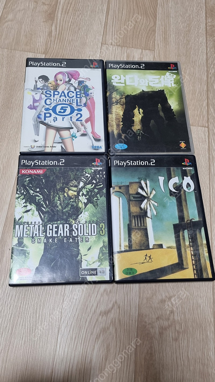 📢 제목에 "제조사/ 브랜드 명"과 "상품명(ex. 동물의 숲2) ”를 넣어 작성하면, 보다 빠른 판매가 가능합니다! 📢 게시글 작성 시 배송 방법에 “직거래”와 “내 위치” 설정할 경우, 보다 빠른 판매가 가능합니다! ps2 완다와 거상, 이코, 스페이스 채널5 파트2, 메탈기어 솔리드3 일괄판매합니다. 엔딩보고 내놓습니다. 참고로 이코는 컴포지트에서만 화면이 나옵니다. 컴포넌트 안됩니다. 잔기스는 약간씩 있습니다. 일괄판매만 합니다. 각개판매 안합니다. 10만입니다. 평일 오후 7시 이후 또는 주말에 시간에 상관없이 안양예고에서 !!!!직거래!!!!만 합니다. 되도록 택배거래는 안하려고 합니다. *** 현장네고시 거래취소입니다. 간혹 우기시는 분들이 계시더라구요. *** *** 찔러보기, 10번이상의 질문 등등 까따로운 거래는 하지 않습니다. (사용법은 구매하실때 알려드릴터이니 꼭 구매하실분만 연락주세요!!!!!) *** *** 제 거래내역보시고 확인해보시고 !!!!!!!!환불,반품,네고!!!!!!! 하지 않습니다. *** 🚨회원님의 거래 게시글을 노린 중고나라 운영진 사칭 피싱 사이트를 주의하세요🚨