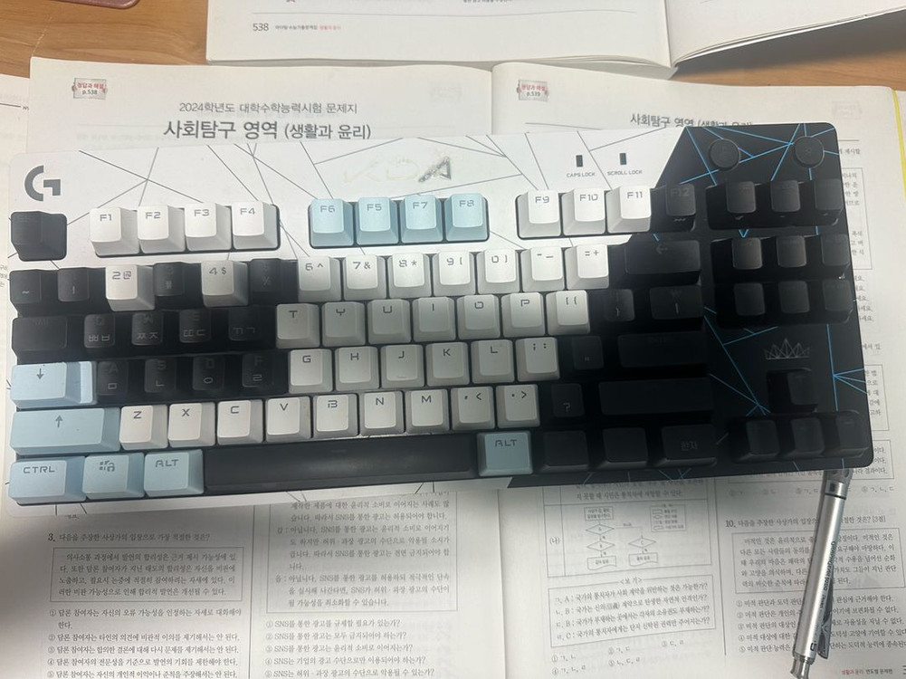 로지텍 키보드 g pro kda 판매 위에 이니셜이 조금 벗겨지기 하지만 그 외엔 다른 하자 전혀 없구 키 다 잘 눌립니다 키캡 다 있습니다