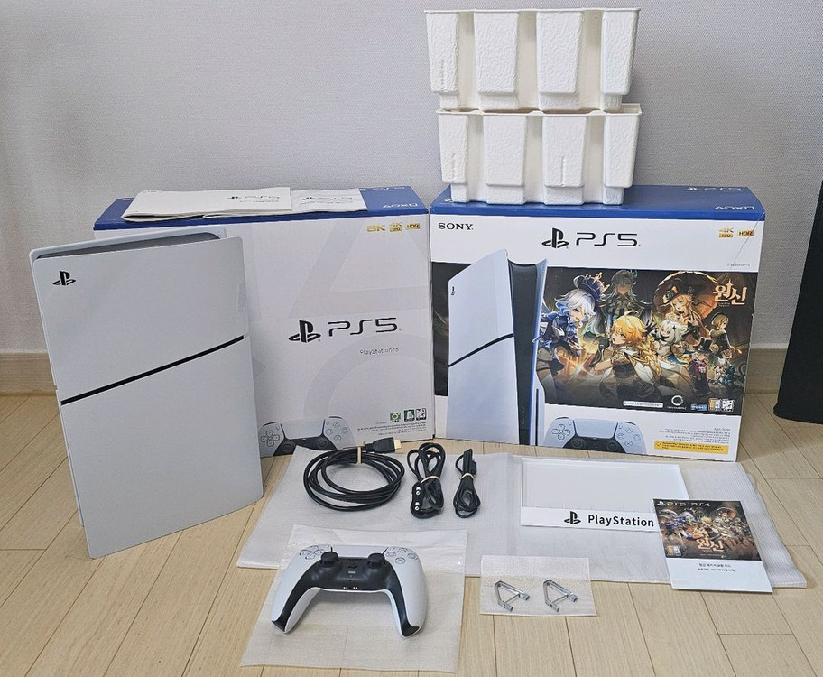 플스5 슬림 디스크 원신패키지 사용 별로 안했고 본체 컨트롤러 외관 기스 없고 깨끗합니다. 본체 상단 하이글로시 부분 미세 기스도 없습니다. 새것 같은 제품 찾으시는 분에게 좋은 제품일것 같습니다. 초기화 했습니다. 구성품 및 박스 모두 있습니다. - 미사용 원신 패키지 교환 카드도 함께 드립니다 (26년 3월 12일까지) - 게임cd 거치대 드립니다. - 페이**3 게임cd 드립니다. 수원 호매실 직거래 할께요~ 아무때나 문자 주세요~~