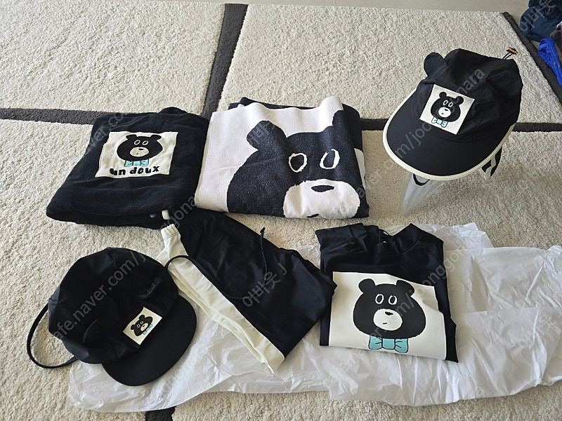 딱2번입었어요 상의는2번 하의1번인데 이유는 첫번째착용후 울세탁 살짝 돌렸는데 바지가 다 헤져버려서요ㅜ 울세탁한다고 그러진 않는데(업체에서도 이상하다하더라구여 ) 암튼 그래서 새상품으로 다시구매했어요. 상의는 소매끝만 살짝 그런데 사진있으니 참고하세요. 타월판쵸 비치모자 타올 롱팬츠래쉬가드 세트 요렇게 구성되어있어요. 참고로 타올은 받자마자 한번사용한거고 원래가 사진처럼 저렇습니다. 사용감이 많은게 아니에요. 오해하실까봐 알려드려요~ 직거래가 안됩니다. 너무 바빠서 시간 맞출수가없어요ㅜ 택배만가능(4천원추가)