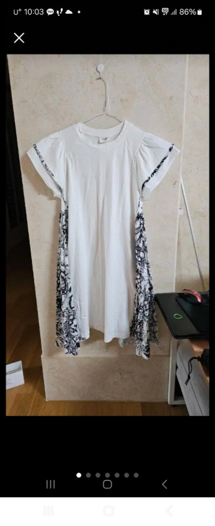 스몰싸이즈이나 플레어라 싸이즈구애없이 착용가능 양싸이드 폴리츠디자인 짧지않은기장에 프릴디자인까지 큐티합니다 화이트색상으로 오염없이 깨끗합니다 나이에맞지않아 구입하자마자 재판매합니다