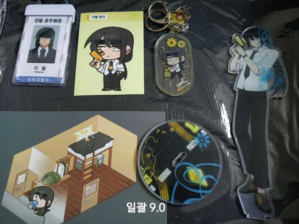각별 미스터리 수사반 굿즈 일괄 양도합니다. 경찰 공무원증 + 띠부씰 + 엽서 + 아크릴키링 + 아크릴스탠드(발판 O) 구성 일괄 9만 원 입니다. 개별판매 안 해요 반택/끼택 0.2 일택 0.4 안전결제 이용 구매 전 연락 부탁해요
