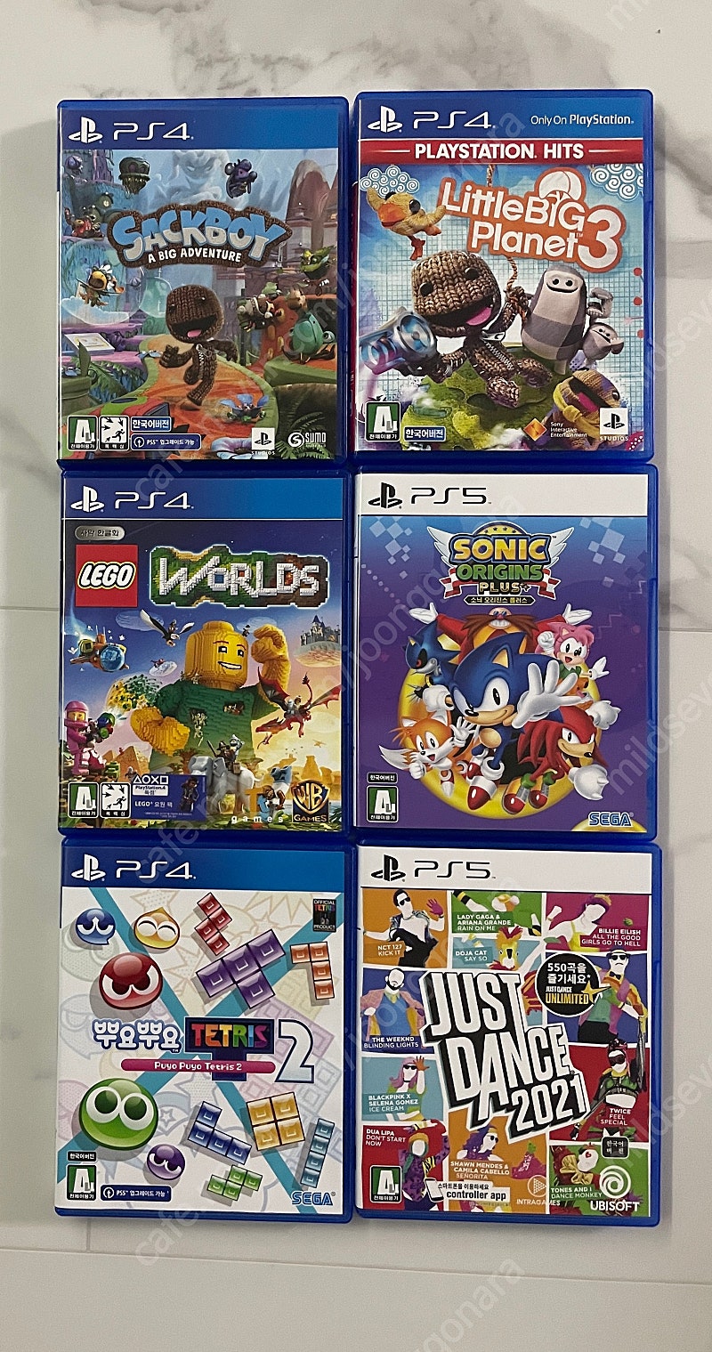 📢 제목에 "제조사/ 브랜드 명"과 "상품명(ex. 동물의 숲2) ”를 넣어 작성하면, 보다 빠른 판매가 가능합니다! 📢 게시글 작성 시 배송 방법에 “직거래”와 “내 위치” 설정할 경우, 보다 빠른 판매가 가능합니다! PS게임타이틀 팝니다 택배비 별도 3천원 (3개이상구매시 무료) 게임팩상태 아주양호 깨끗 다크소울3 - 2만 저스트댄스2021 - 1만 색보이 - 2만 리틀빅플래닛3 - 1만 뿌요뿌요테트리스2 - 1만 레고월드 - 1만 소닉오리진스플러스 - 1만 더쇼22- 2만 일괄구매시 9만원에 모십니다 🚨회원님의 거래 게시글을 노린 중고나라 운영진 사칭 피싱 사이트를 주의하세요🚨