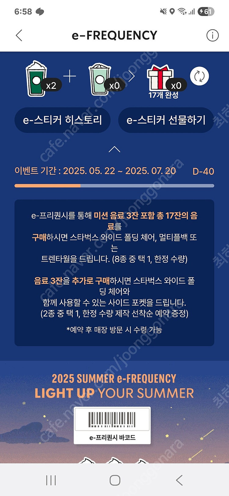 📢 제목에 "제조사/ 브랜드 명"과 "티켓명(ex. 스타벅스 아메리카노 Tall) ”을 넣어 작성하면, 보다 빠른 판매가 가능합니다! 📢 게시글 작성 시 배송 방법에 “직거래”와 “내 위치” 설정할 경우, 보다 빠른 판매가 가능합니다! 📢 내가 가진 커피, 편의점 e쿠폰을 <J쿠폰>에서 간편하고 빠르게 판매가 가능합니다! 2일 이내 판매금을 정산 받아보세요. 프리퀀시 미션 각 2400원 2장있어요 🚨회원님의 거래 게시글을 노린 중고나라 운영진 사칭 피싱 사이트를 주의하세요🚨