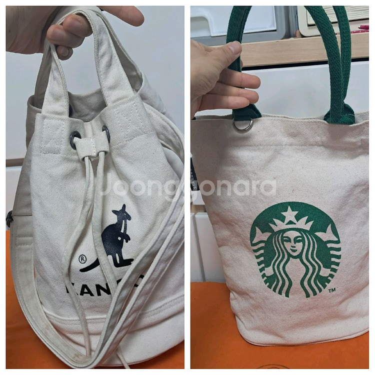 스타벅스 캔버스 텀블러백과 캉골 에코백 일괄 가격 둘다 상태 양호, 모두 세탁해서 보내드려요. 캉골 에코백 실측: 25, 24, 20(가로, 세로, 폭) 스타벅스 에코백 실측: 27, 30, 12.5(가로, 세로, 폭) ♡에누리요청 답변X 교환 X , 하실분만 연락 부탁 ♡개인간 중고거래 특성 상 교환 환불 × 신중한 구매 부탁 (하자 있을때 글 기재한 하자 숙지 부탁) ♡타 사이트에 동시에 올리고 있어 구두 예약×, 예약금 및 송금 하셔야 예약 가능 ♡직거래 진짜 오실분만 연락부탁 ♡중고 제품인데 새제품 품질 원하시면 새제품 구매 권장 ♡안전결제 선호 ♡개인차 있어 사이즈조언× 년도수답변× ♡ 택배거래 착불, 선불 반값택배2000원(크기 제한,모든변80cm이하)일반택배-4000원, 30만원이상 무료배송, 제주도-5000원부터
