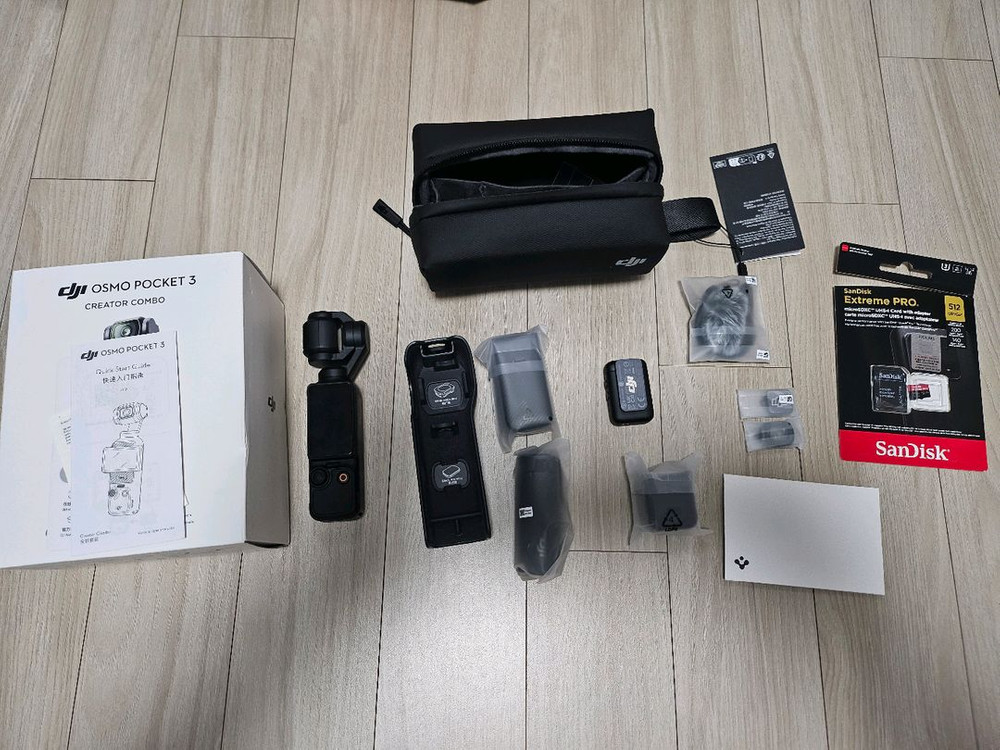 오즈모포켓 3 콤보 팝니다. 1.본체 및 케이스만 여행 당시 사용하고 나머지 구성품은 미사용입니다. 구성품 중 usb c 케이블은 없습니다. 2.5월30일 상품 구매 및 활성화 진행했습니다. 6/29까지 리프레시 케어 등록 가능 (케어는 없음) 3. 오즈모포켓3에 가장 좋은 샌디스크 익스트림 프로 512g 포함, 4k 60p 기준 약 9시간 촬영 가능 ( 구매가: 7만, 5월 구매 ) 4. 슈피겐 강화유리/액정보호필름 부착 및 미사용 한장 있음 (구매가 2만) 약 100만 이상 비용을 들여 구매했는데 막상 여행가서 써보니 앞으로 안쓸 듯 하여 판매합니다. 경기도 고양시 덕양구 3호선 지축역 거래 가능합니다. 네고 불가하며 무조건 직거래 입니다. 가격 850,000원