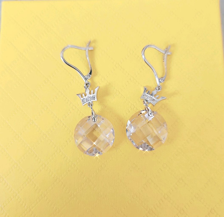 14k 화이트골드 제이에스티나 크리스탈 귀걸이입니다. 화이트라 시원해보이고 큼지막한 투명 크리스탈이 블링블링 예뻐요. 거의 새거예요. 네고, 반품 사양합니다.