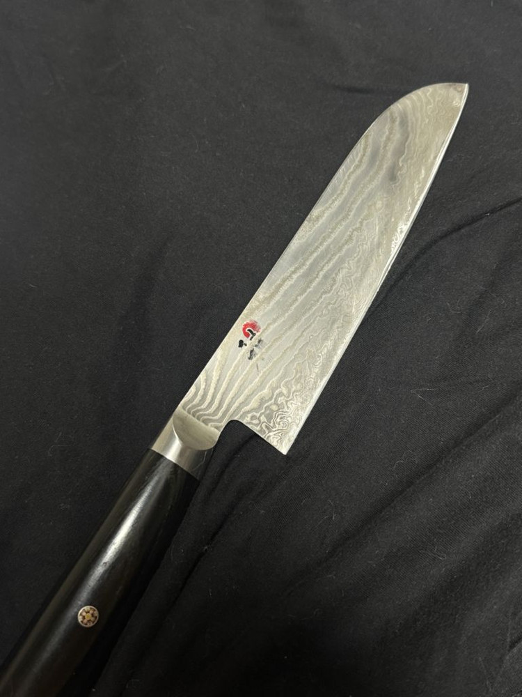 25만원 주고 구매한 미야비 산도쿠입니다 칼날이 아주 날카롭고 디자인도 예뻐요 요리에 관심 있으신 분들께 추천드려요 칼을 갈았던 자국과 사용감으로 무늬가 조금 지워져 거의 10만원 저렴이 판매합니다 칼날 길이는 7인치입니다 구매하시면 칼도 갈아드리고 칼집도 같이 드리겠습니다