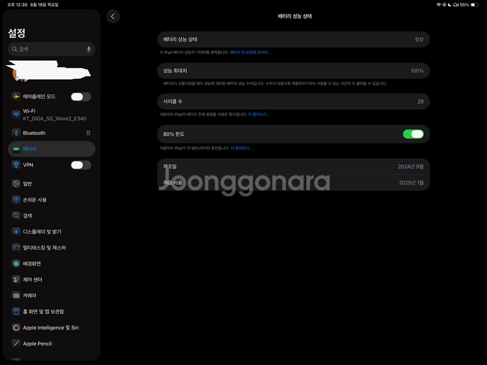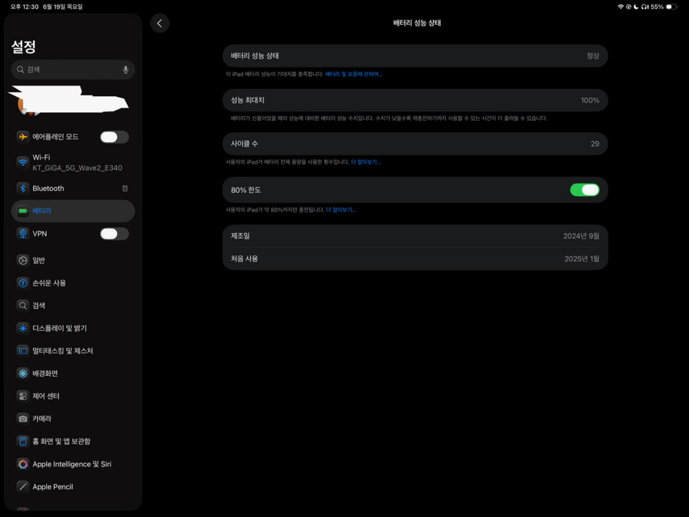 아이패드 판매합니다 배터리 성능 100%이고, 사이클 수는 29회입니다 올초에 구매하고 거의 집에서만 사용했습니다. 눈에 보이는 기스는 없으며 박스는 필요하시면 같이 드립니다. 추가로 네고 및 다른 패드+현금 교환형식으로도 거래 받습니다. 편하게 연락주세요.