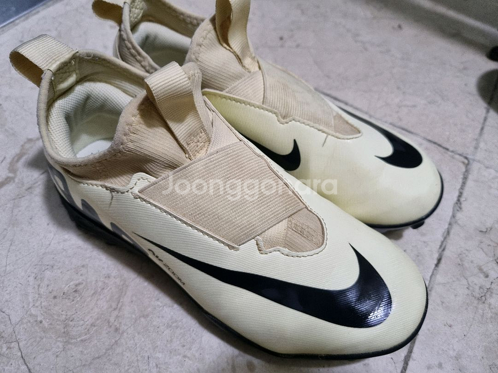 나이키 줌 머큐리얼 축구화입니다 남아 220cm 입니다. 현재 네이버에서 6만원 이상으로 판매중인 나이키 머큐리얼 레몬 레이드색상입니다. 레몬색상이라 아이들 신으면 산듯하고 이쁩니다. 사진처럼 사용감 있어요~ 세탁한번 하셔서 사용하시면 괜찮을것같아요. 중고라서 교환, 환불은 어려운 점 이해 부탁드려요~