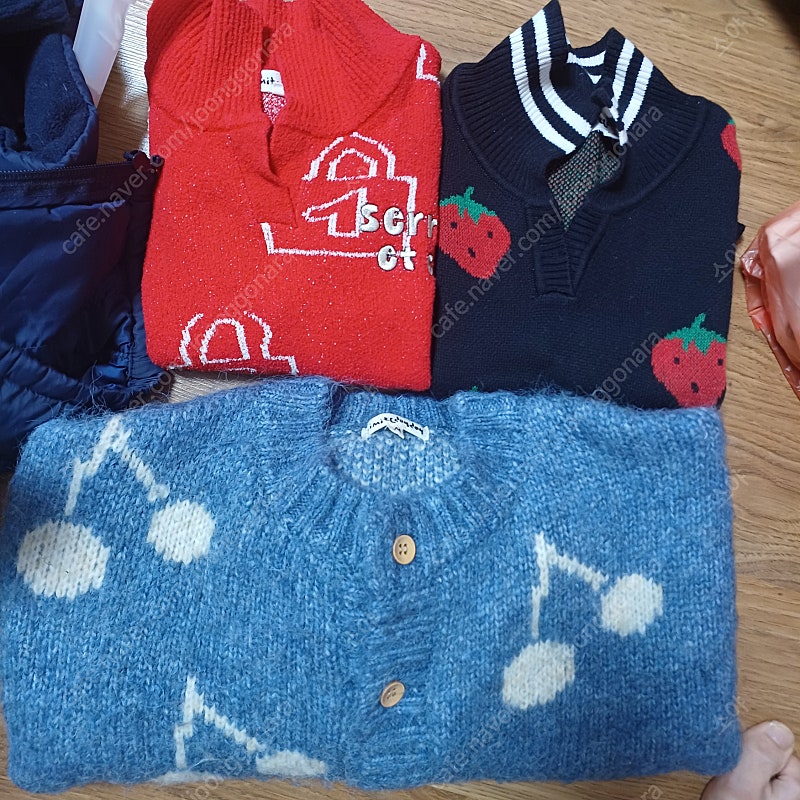 리미떼두두 반팔니트 긴팔가디건입니다 아이가 패턴때문에 안입는다고해서 팔아요 실착용 1회 개당 30000입니다