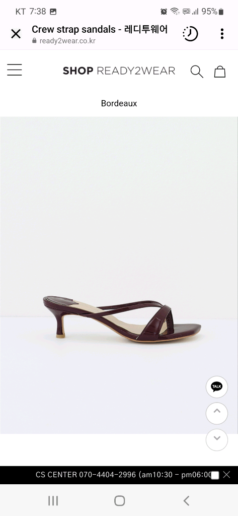R2W 레디투웨어(전,시화) 사이즈:235cm 소재:소가죽(애나멜느낌) 색상:버건디 굽:3센티인듯(실측아니라) 실착횟수 5회 미만 신발은 1회만 신어도 바닥은 감안해주시구요. 왠만하면 팔지 않는편인데 조리는 저에겐 발가락이 아프네요;;; 요런 조리 잘 신는분께 추천드립니다. 중고거래의 판매상 예민하거나 환불은 불가합니다. 최근에도 비슷한 디자인이 출시 되었더라구요