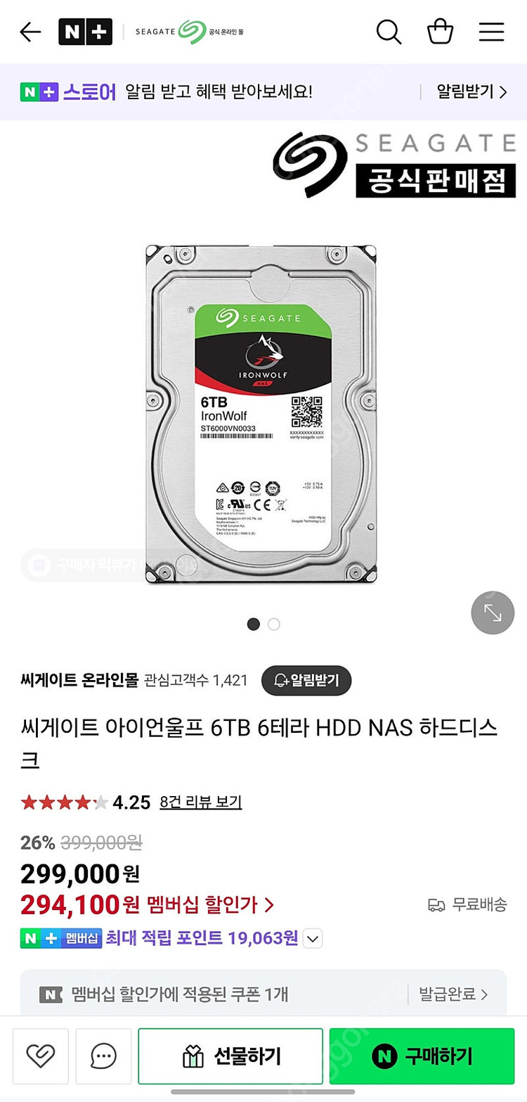 📢 제목에 "제조사/ 브랜드 명"과 "상품명(ex. 맥북 에어 13)”를 넣어 작성하면, 보다 빠른 판매가 가능합니다! 📢 게시글 작성 시 배송 방법에 “직거래”와 “내 위치” 설정할 경우, 보다 빠른 판매가 가능합니다! NAS 하드입니다. 일반 HDD로 사용할 수있는지는 몰라요. 상태좋습니다. 정품스티커 부착되어있어요 2개있고 개당 가격입니다. 🚨회원님의 거래 게시글을 노린 중고나라 운영진 사칭 피싱 사이트를 주의하세요🚨
