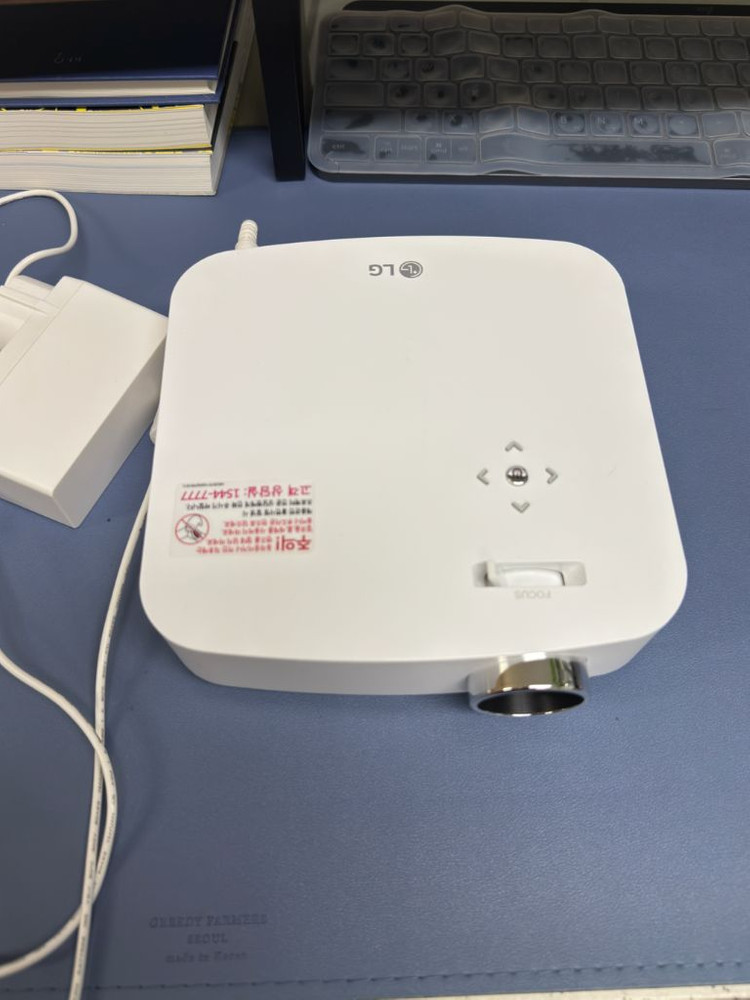 LG PF50KA 미니 빔프로젝터입니다 가볍게 들고 다니면서 사용하기 좋아요 - LED 광원, HD 해상도 - 최대 600 안시루멘 밝기 - 블루투스, 스크린 미러링 기능 - USB, HDMI 연결 지원 - 내장 배터리로 편리함 010-구2구5-2팔21 사용시간 100시간 정도류 짧습니다. 안 쓴지 오래되어 판매합니다. 리모컨은 없는데 쿠팡에서 판매하는 리모컨이나 lg리모컨 모두 가능합니다.