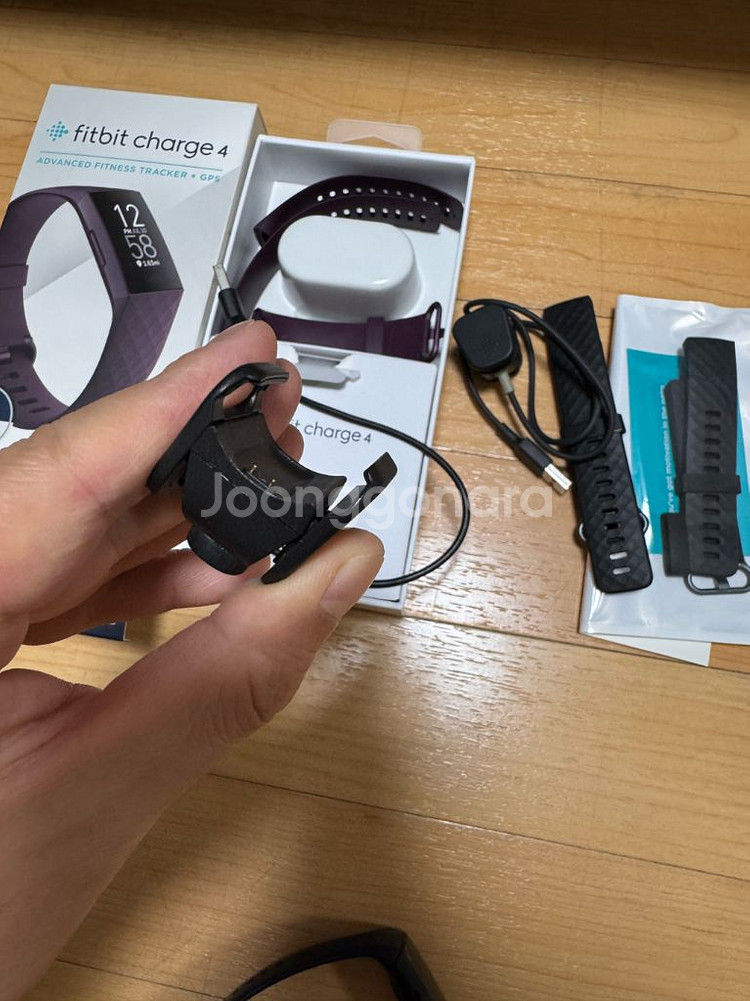 핏빗 차지4 팝니다. 사진 구성품 일괄 입니다. 충전기도 2개이고 밴드도 넉넉함 작동 잘되고 디스플레이 밝기도 충분합니다. 현재 체결된 밴드는 호환밴드임 택배비 포함 가격 (제주 도서는 추가됨)