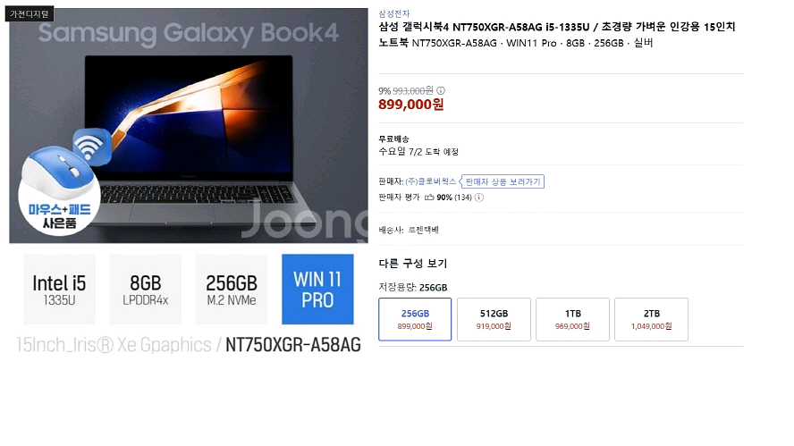 2025년 1월에 개인 소장용으로 구매했구요 무상 AS 2026년 11월 까지 남아있습니다 단순개봉후 상태 확인만한 신품급이구요 전체 점검완료 했고 바로 사용하시면 됩니다 신품가 89만9000원 고가 노트북이구요 삼성 전자 국내 정품입니다 윈11프로 최신 업데이트 및 원클릭 복구 시스템 되어있고 스케치업,오토캐드,일러스트,프리미어 프로,한글,오피스 등 다 잘됩니다 모델명 : 삼성 NT751XGR-A58A 화면 : 15.6인치 고화질 광시야 IPS LED (1920 X 1080 풀HD) CPU : 인텔 최신 13세대 i5 1335U (하이퍼쓰레딩/터보부스터 내장/전 세대 i7보다 고성능 CPU) VGA : 인텔 XE 그래픽스 (고사양 작업 및 3D게임 가능 고성능 iGPU) 메모리 : 램DDR4X 8G (듀얼채널 초고속 전용램) SSD : 초고속 NVME 256기가 부팅 5초 (일반 SSD보다 전송속도 5~10배) 기타: USB3.0/웹캠/기가 무선랜 내장/블루투스/HDMI포트,외부출력 지원/USB-PD 충전 및 고속 충전 배터리 : 대용량 배터리 (완충시 최대 사용시간 15시간 정도 뜨네요) 무게 : 1.55Kg (초슬림형 & 가벼워서 휴대하기 편해요!!) 소음 및 발열상태 좋구요 구성품은 고속 충전기 + 노트북 + 마우스(신품) 이구요 간단한 3D게임 가능 합니다 (발로란트,오버워치GTA5,피파,롤,써든어택,카트라이더,던전앤파이터,메이플스토리 등등) 관리 상태 보시면 아시겠지만 네고는 정중히 사양할게요 지역은 서울 서초 교대역/강남역 (5번출구) 이구요 가까운 분은 오셔서 직거래 가능하고 서울/경기도 전지역/인천 등 수도권은 갖다드릴수도 있구요 안전거래 및 카드 결제도 가능합니다 파손면책 동의시 택배나 퀵도 가능해요 택배비는 제가 부담해드립니다 램/SSD 등 최저 부품값만 받고 업글 진행도 가능합니다