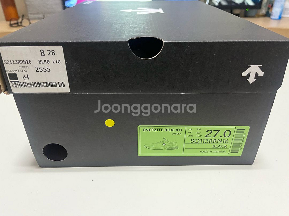 개인정보(거래정보)를 주고받는 행위는 사기에 노출될 수 있으므로 즉시 중고나라로 신고해 주세요데상트 러닝화 에너자이트 라이드 입니다 매장 시착, 바로 구매 후 보관만 한 택달린 새제품 입니다 요새 무릎이 아파서 당분간 신을 일 없어서 저렴하게 내놓습니다 박스 포함