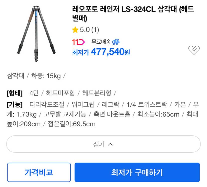 LS-324CL 풀구성품 팝니다. 209cm 까지 올라가는 대형삼각대 입니다. 모든 기능 정상작동 합니다. 생활스크래치 이외 찍힘 없습니다. 영통역 / 수원지역 / 수도권 (협의)직거래로만 합니다. 중고거래특성상 환불은 불가합니다.