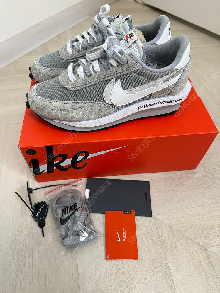 📢 제목에 "제조사/ 브랜드 명"과 "상품명”를 넣어 작성하면, 보다 빠른 판매가 가능합니다! 📢 게시글 작성 시 배송 방법에 “직거래”와 “내 위치” 설정할 경우, 보다 빠른 판매가 가능합니다! 나이키 x 사카이 x 프라그먼트 LD와플 라이트 스모크 그레이 265입니다. 단기간 1회 착용하였으며 사진 및 동영상 처럼 상태가 매우 좋습니다. 슈브제에 보관하였으며 아직도 새신발 냄새가 납니다. 박스포함 풀 구성품이며 애매하게 가품걱정으로 구매하지 마시고 크림에서 구매한 20000% 정품이며 가품일시 200배 보상합니다.(구매내역도 첨부합니다) 🚨회원님의 거래 게시글을 노린 중고나라 운영진 사칭 피싱 사이트를 주의하세요🚨