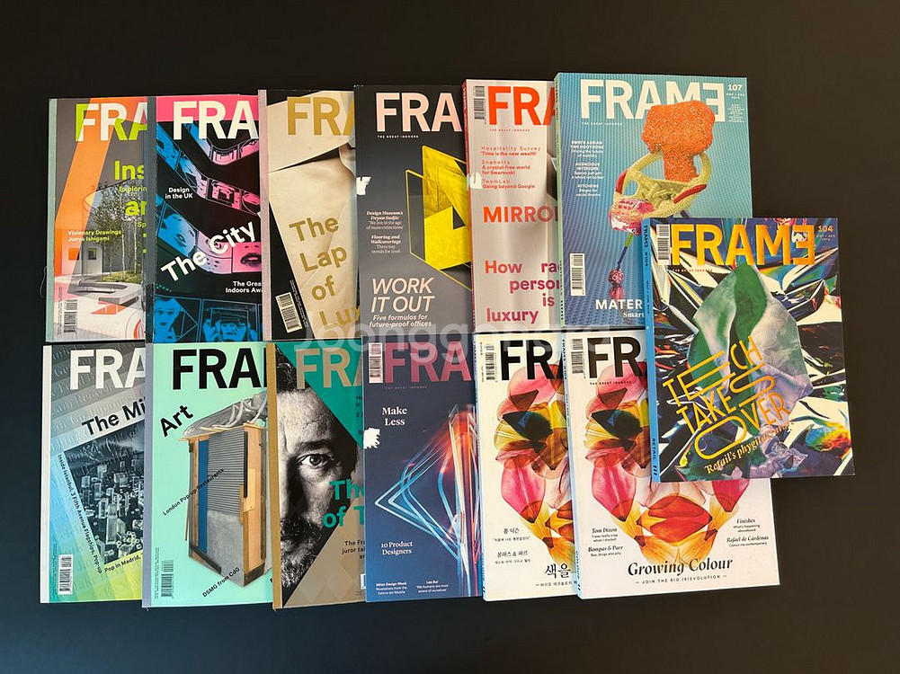 frame 인테리어 잡지 팝니다 측면에는 사용감 있는 호가 있고 상태가 좋은 것도 섞여 있습니다 단, 표지면은 상태 양호합니다 책등이 패브릭 마감으로 되어 있는 편도 있습니다 내부 페이지는 상태 좋고요 총12권 일괄로 팝니다 (1권은 국내판 추가로 드립니다) 한남동 직거래 가능합니다