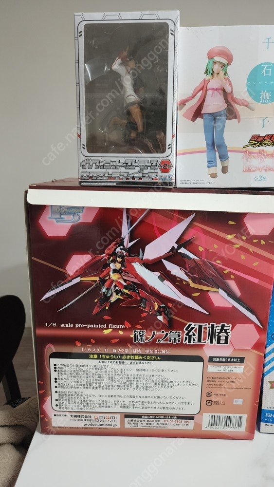 2015년부터 2018년까지 한국-일본 화물선 항해사로 근무시 직접 키타큐슈 고쿠라 아루아루시티 에서 구매한 상품들이고 미개봉 및 개봉상품들입니다. 20대 초반부터 모아놨다가 결혼 후 탈덕으로 인해서 모아둔 상품들이기에 겉 상자상태는 새상품들과는 다른 제품들이 있음을 감안하고 구매에 참조하시면 되겠습니다. (그만큼 가격도 새제품 당시와는 저렴한 가격이니 감안하시고 연락주세요) 최근 나오는 애니메이션들이 아닌 예전 추억의 애니메이션 제품들이기에 단종 및 상품을 찾아보기는 어렵지만 그만큼 보관 상태나 일부 개봉제품등을 참조하였기에 가격을 적당하게 책정했습니다. 단순 변심 및 반품은 불가하다는 점 고지드립니다. 택배비는 4000원 별도이며 우체국으로 배송됩니다. (2개 이상 구매시 택배비는 부담해드립니다.) 경품피규어의 경우 메인1~4번 구매시 하나씩 랜덤으로 서비스 드립니다. 네고는 합리적인 가격이면 협의 가능합니다. 판매글에 고지드린대로 개봉 상품은 전시장에 전시만 한 상품들입니다. *직거래는 서울 중랑구 신내동에서 가능합니다 (6호선 봉화산역 부근) 중고나라 특성상 개개별 제품의 판매시에는 판매글을 따로 올려 네이버페이 구매도 가능하니 댓글 혹은 쪽지 주시면 연락가능합니다. --------------------------------------------------------------------------------------------------------------------------------- (번호-제조사-상품명-가격 순입니다) 1. AMIAMI - 시노노노 호우키 (아카츠바키) 1/8 스케일 (손 부분 파손 ) :70,000원 참조 : 인피니트 스트라토스(IS) 시노노노 호우키 피.. : 네이버블로그 2. 굿스마일컴퍼니 - 아이돌마스터 신데렐라걸즈 시부야 린 (뉴 제네레이션 버젼) : 80.000원 참조 : 渋谷凛 ニュージェネレーションVer. 3.FREEing - 투러브트러블 다크니스 코테가와 유이 유카타 버젼 ; 100,000 (미개봉 상품) 참조 : [FREEing/굿스마일] 투러브 루 트러블 .. : 네이버블로그 4.ANIPLEX - 카토 메구미 한정판 : 110,000 참조 : 애니플렉스 1/7 카토 메구미, 시원찮은 그녀.. : 네이버블로그 5. 경품 피규어(미개봉) -> 개당10,000원 -모노가타리 시리즈 : 센고쿠 나데코 -인피니스 스트라토스 : 황 링인 - 나는 친구가 적다 : 쿠스노키 유키무라 - 소드아트온라인 : 아스나 SAO 버젼 -소드아트온라인 : 아스나 ALO버젼 -유루유리 : 후나미 유 -유루유리 : 토시노 쿄코 -하이큐 시리즈 : 야치 히토카 -리제로부터 시작하는 이세계생활 : 람 -내 여동생이 이렇게 귀여울리가 없어 : 코우사카 키리노 -니세코이 : 키리사키 치토게 -페이트 제로 : 아이리스필 폰 아인츠베른 -나가토유키쨩의소실 : 나가토 유키 --------------------------------------------------------------------------------------------------------
