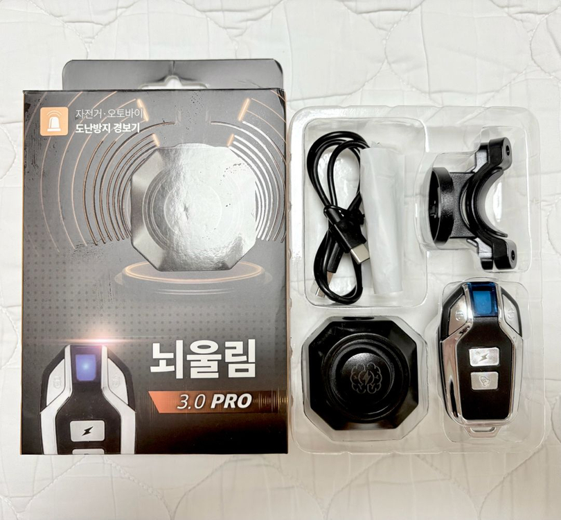 자전거,오토바이,전동킥보드 등에 사용할 수 있는 도난방지기입니다. 뇌울림이라는 이름답게 정말 시끄럽고 원격으로 껐다켰다 할수있어 편합니다. 구성품 뇌울림 본체 리모컨(모드 변경,소리 변경 등) 마운트 충전단자