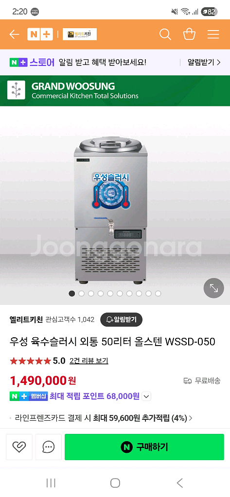 개인정보(거래정보)를 주고받는 행위는 사기에 노출될 수 있으므로 즉시 중고나라로 신고해 주세요우성 육수 슬러시 WSSD-050 모델입니다. 외통은 50리터 올스텐으로 되어있어요. 정가는 1,490,000원입니다. 냉면육수로 저희는 사용했고 회전이라 슬러시 육수로 쓸 수 있어서 좋습니다.