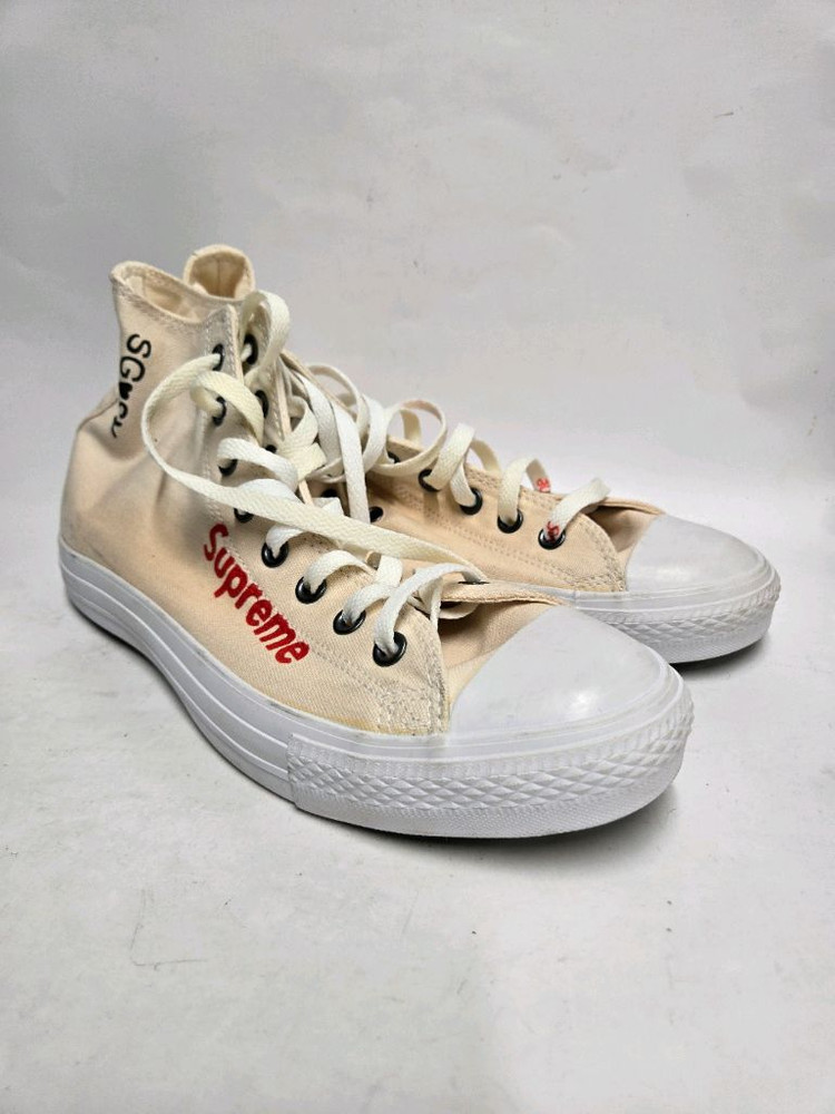 개인정보(거래정보)를 주고받는 행위는 사기에 노출될 수 있으므로 즉시 중고나라로 신고해 주세요컨버스 X 슈프림 하이 스니커즈 아이보리 색상이에요 사이즈는 280mm입니다 사진 보시고 편하게 연락 주세요~ 보여지는 구성품 입니다.