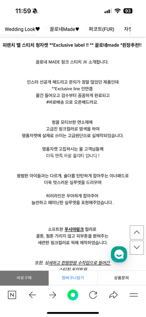 구매가 259,000 https://m.chlone.kr/product/detail.html?product_no=831&cate_no=33&display_group=1#none 현재도 판매중인 절대 할인하지 않는 라인입니다. 정말 예쁜데 일이 바빠 입고 나갈일이 없네요 ㅠㅠ 봄여름 청바지에 입으면 정말 이쁠듯해요 드레스룸 그대로 걸려있어서 예쁘게 입어주실분 데려가세요 <<필독. 읽어보시고 문의주세요!!!>> 에눌불가 X 찔러보기만 사절 비매너는 차단합니다. 중고 상품 특성상 반품 환불 불가. 구매의향 확실하신분만 실사 문의주세요. 사용감은 정말로 1-3회 사용 이내 깨끗한 상품만 내놓아요 의류쇼핑이 취미이기에 새것같은것 아니면 차라리 기부해버립니다. 저렴하게 예쁜옷 겟해가세요. 배송비 별도