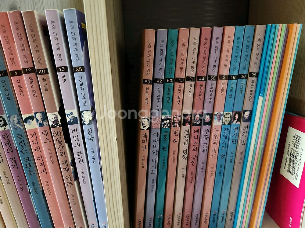 논술 만화 세계명작 56권 +워크북12권 대부분 상태좋으나 파본2권정도 있어요 사진 참고해 주세요 어려운 고전을 만화로 쉽게 이해할수 있습니다 중고이고 하자 있으니 예민하신분 패스해주세요 택배는 착불이거나 선불시 6500원입니다