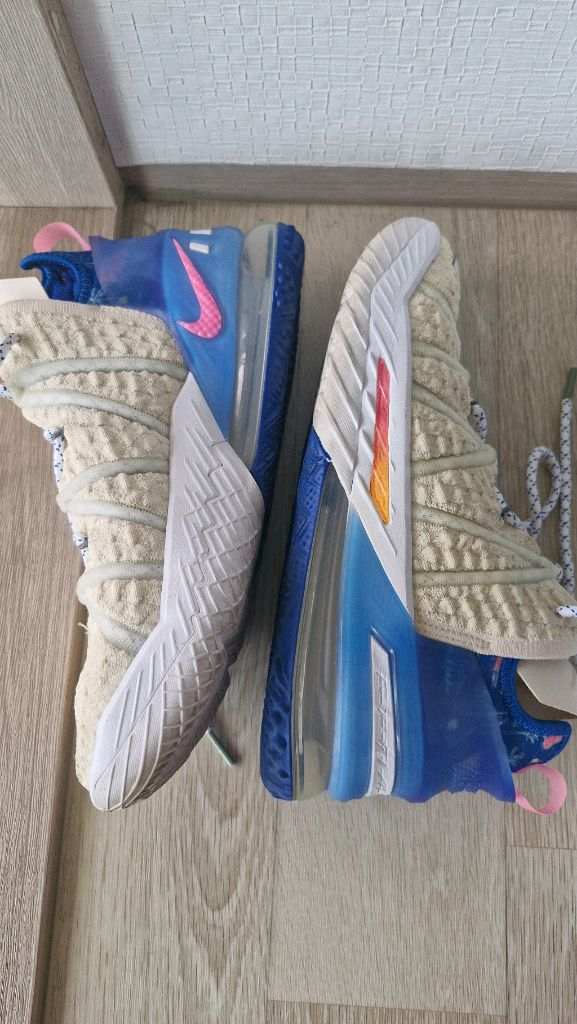 나이키 르브론 18 로우 DB8148-200 250 사이즈 - 갑피 재질: 텍스타일, 폴리에스터, 합성 가죽 - 중창 재질: 파일론 + 줌 에어 - 밑창 재질: 고무 마지막 사진에서 보시는 것처럼 앞쪽에 손상된곳 있는데 신발 사용에는 문제 없어요 바닥 상태는 좋습니다 일반택배 4000