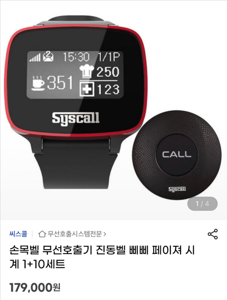 씨스콜 손목벨 무선호출기10 (손목벨 1개)세트입니다 - 레스토랑, 카페, 병원 등에서 사용 - 손목시계형 수신기와 호출벨로 구성 - 호출 시 진동, 소리, LED 알림 제공