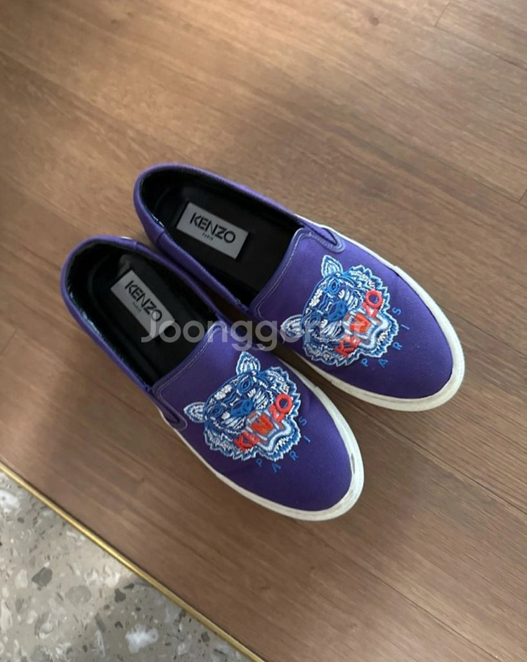 겐조 타이거 슬립온입니다 색상은 보라색이고요, 캔버스 재질입니다 사이즈 37 (240) KENZO 겐조 타이거 슬립온 퍼플 - 모델명: 5SN100F70.51 - 소재: 겉감 면 100%, 안감 면 100%, 솔 고무 100% - 정가는 250,000원입니다 편하게 신기 좋아요