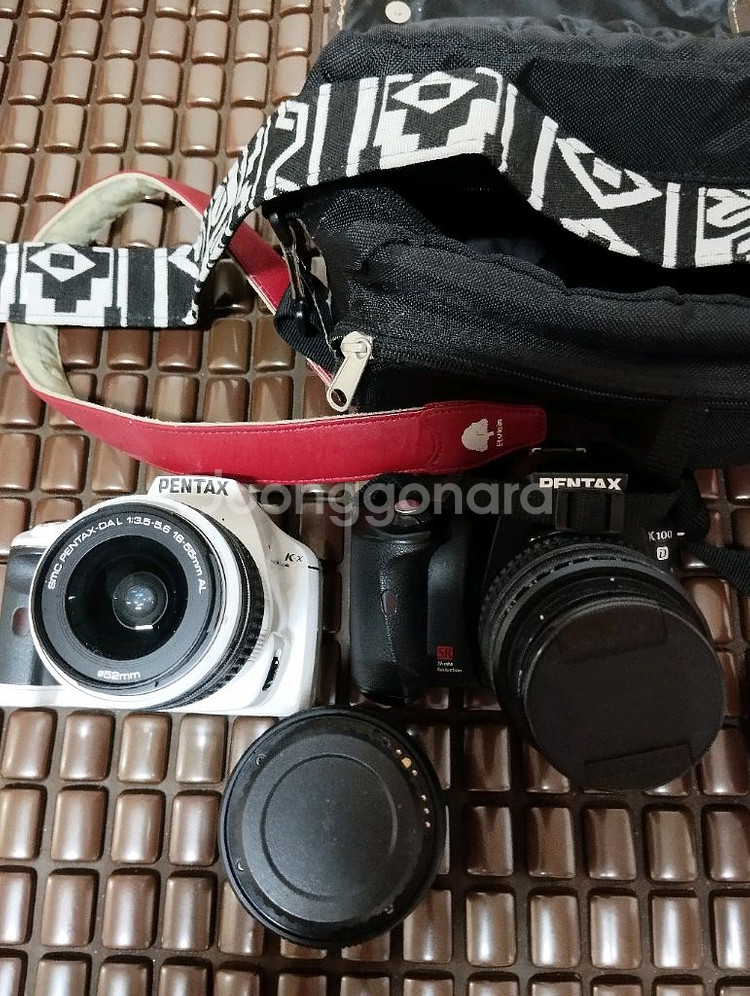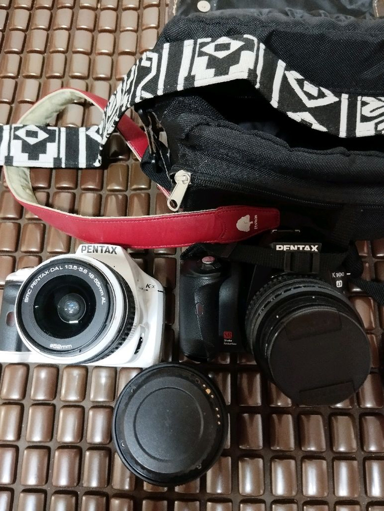 펜탁스 K100과 kx 사진에 있는 모든것 일괄 판매합니다 사진 참조 하세요 상태 좋습니다 건전지 메모리 렌즈 앞뚜껑 바디 캡 없습니다. 건전지 메모리 가지고오셔서 테스트 가능합니다 .
