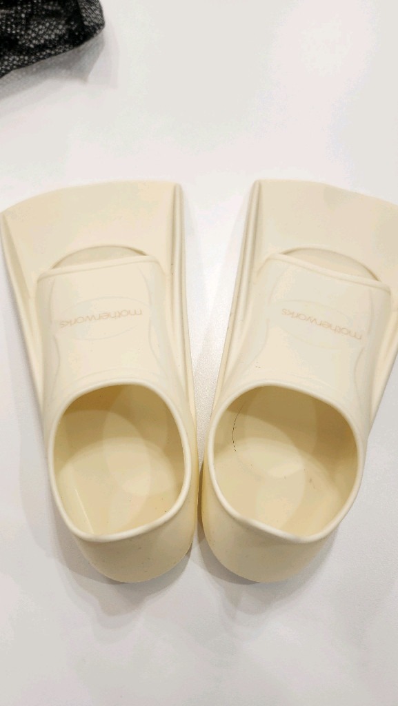 마더웍스 아동용 어린이 숏핀 유아 오리발 아이보리 사이즈는 XXS(150~170) 입니다 나트랑간다고 구매해서 갔는데 사이즈를 제가 잘못선택해서 한번도 못신었어요 필요하신군 연락주서요