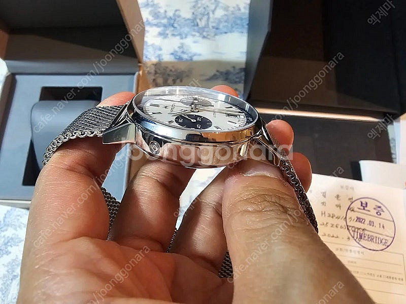 📢 제목에 "제조사/ 브랜드 명"과 "상품명”를 넣어 작성하면, 보다 빠른 판매가 가능합니다! 📢 게시글 작성 시 배송 방법에 “직거래”와 “내 위치” 설정할 경우, 보다 빠른 판매가 가능합니다! 1. 상품명 : 해밀턴 인트라매틱 오토 2. 구성 : 시계, 박스, 보증서(공란), 정식AS 수리내역서(보증기간 남았음), 제치 가죽줄 3. 상태 : 깨끗하나 일부 헤어기스 컬렉션 정리 차원에서 고민 끝에 팝니다. 해밀턴 인트라매틱 크로노 3개 째인데, 예쁜 건 얘가 제일 나은 거 같습니다. 저는 2차 구매자로, 원래 병행수입품인데 전 주인이 정식as센터에서 무브먼트 교체 수리를 받아서, 보증이 아직 남게 되었습니다(26.8). 걱정없이 차시면 되겠습니다. 사진에는 없는데 제치 검정 가죽 스트랩도 같이 드립니다(탱버클). 연락 부탁드림니다. 🚨회원님의 거래 게시글을 노린 중고나라 운영진 사칭 피싱 사이트를 주의하세요🚨