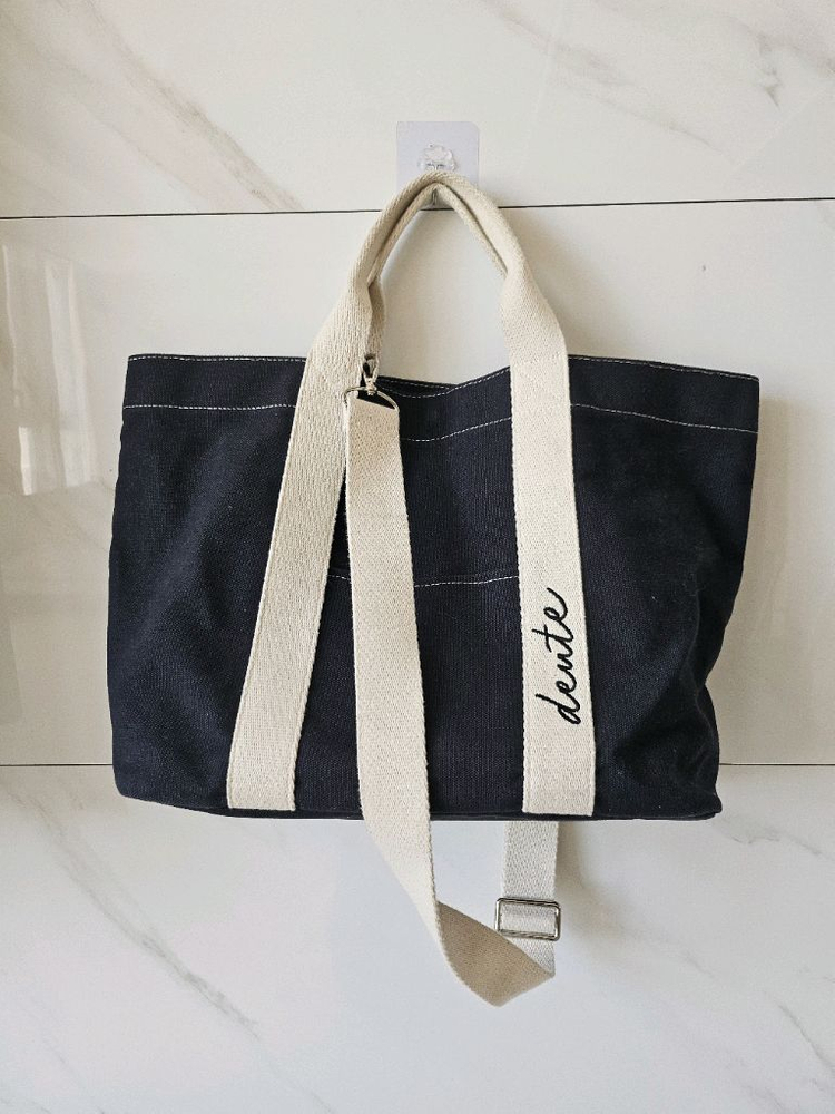 deute 네이비 색상의 토트백입니다. 깔끔한 디자인에 넉넉한 수납 공간을 자랑합니다. 데일리백으로 활용하기 좋아요! 전 기저귀가방으로 쓰려고 샀어요~ 일반택배 2,000원 반값택배 1,000원 추가됩니다